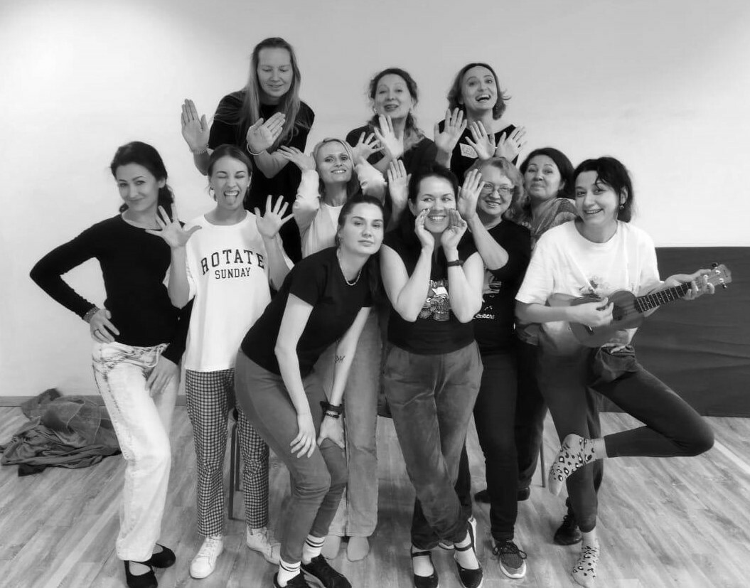 На данном этапе группа погрузилась в новые формы playback – синхронизация и хор. Юрий Журин провел лекцию о важности музыкального сопровождения в playback театре, а затем студенты закрепили полученные знания на практике при помощи упражнений.