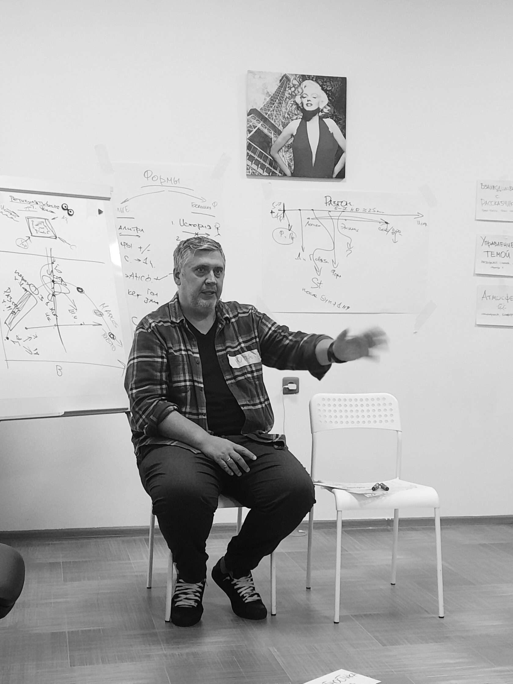 Мы погрузились самое сердце знакомства с Плейбэк театром, научились управлять вниманием, узнали изнутри как устроен интерактивный перформанс, есть ли структура в импровизации и для чего нужны ритуалы. Мы учились не только слушать, но и слышать собеседника, выделять в его рассказе главную сцену, чтобы оформить порой "взъерошенную" историю зрителя в художественное произведение.